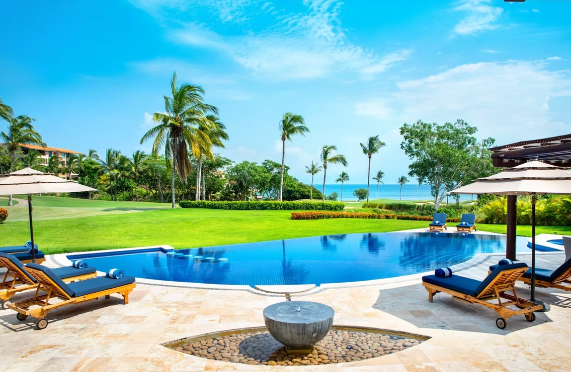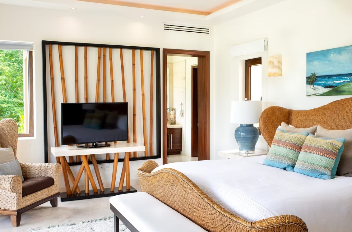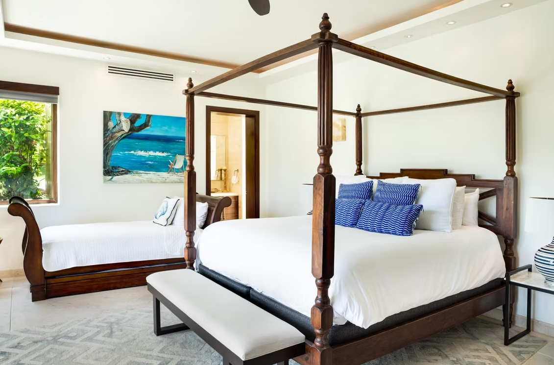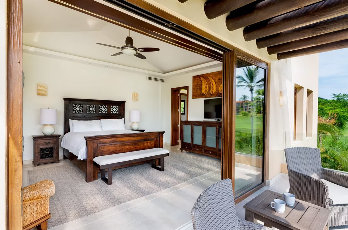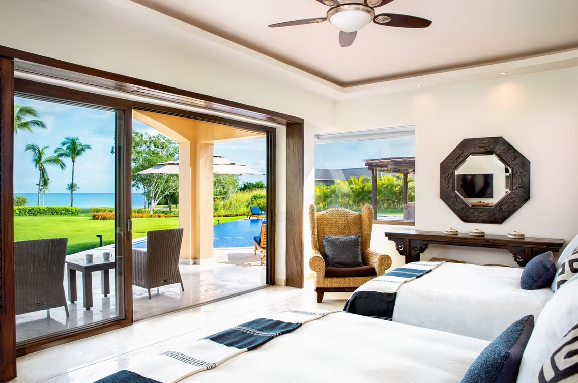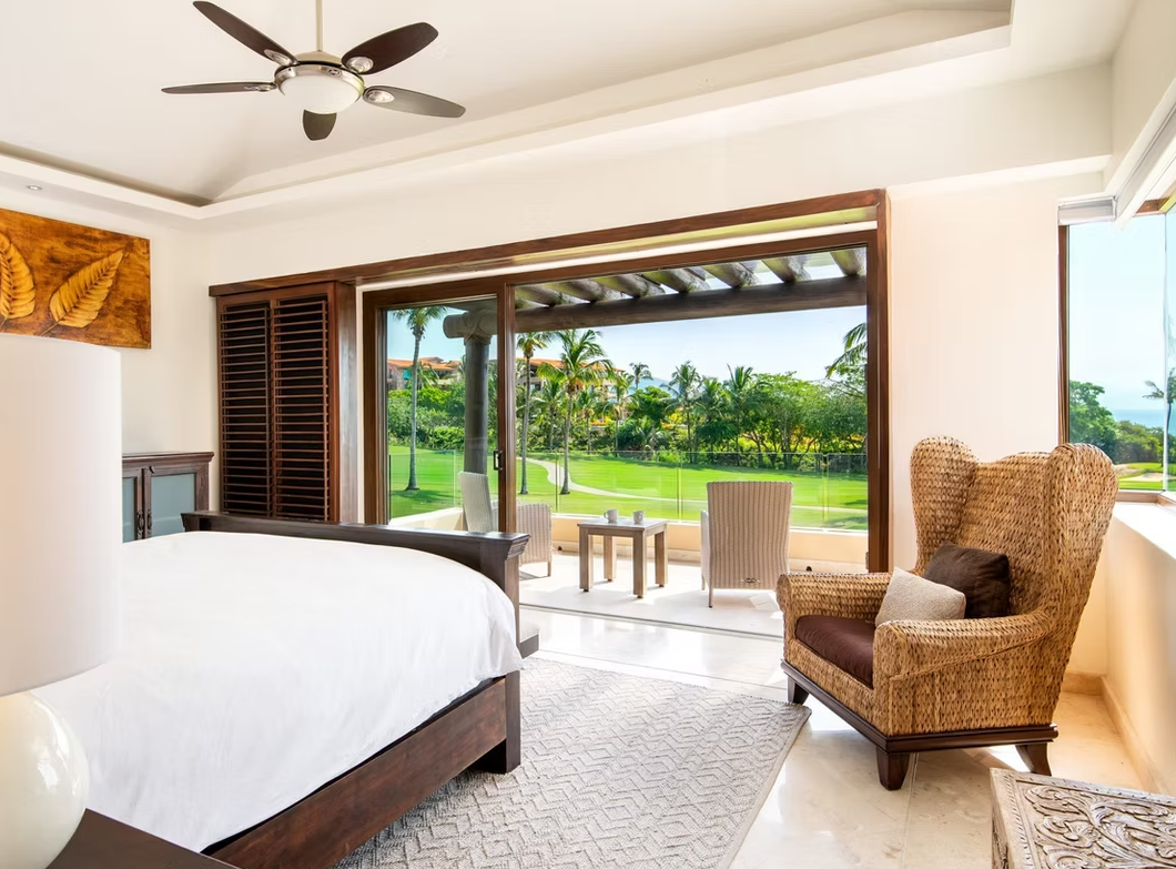- Bedroom 4: 2 Queen beds, Primary suite with golf course and ocean views