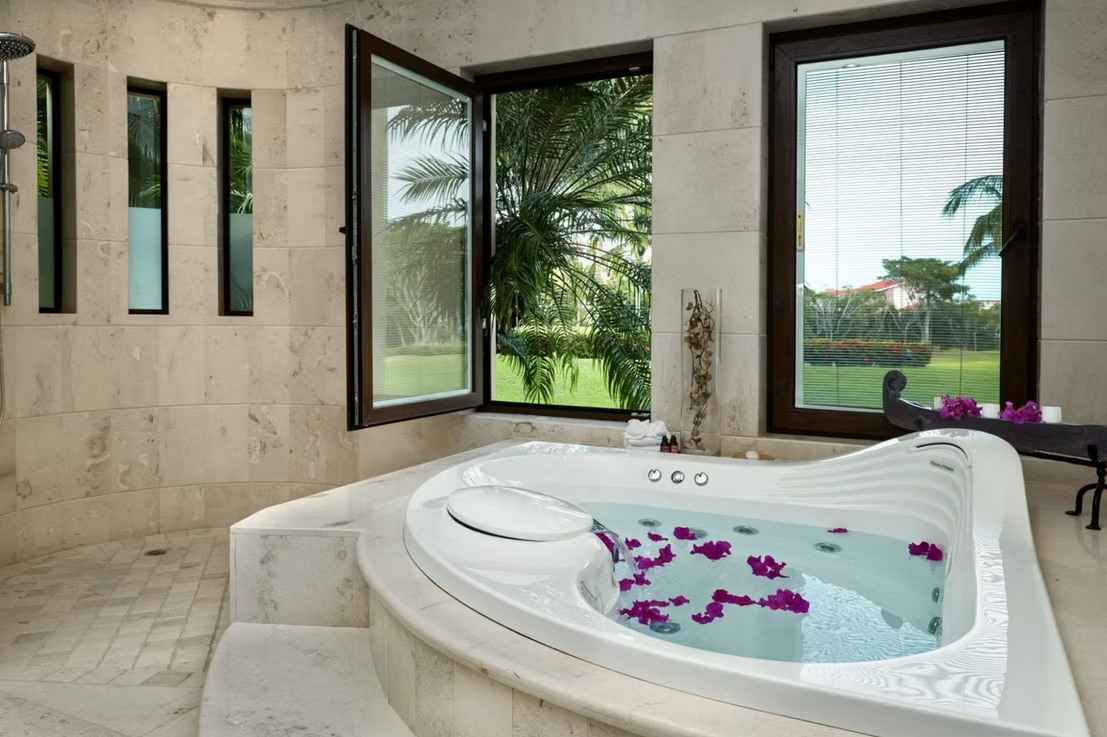 - Bedroom 1: 1 King bed, Primary suite, with outside shower, ocean & golf course views