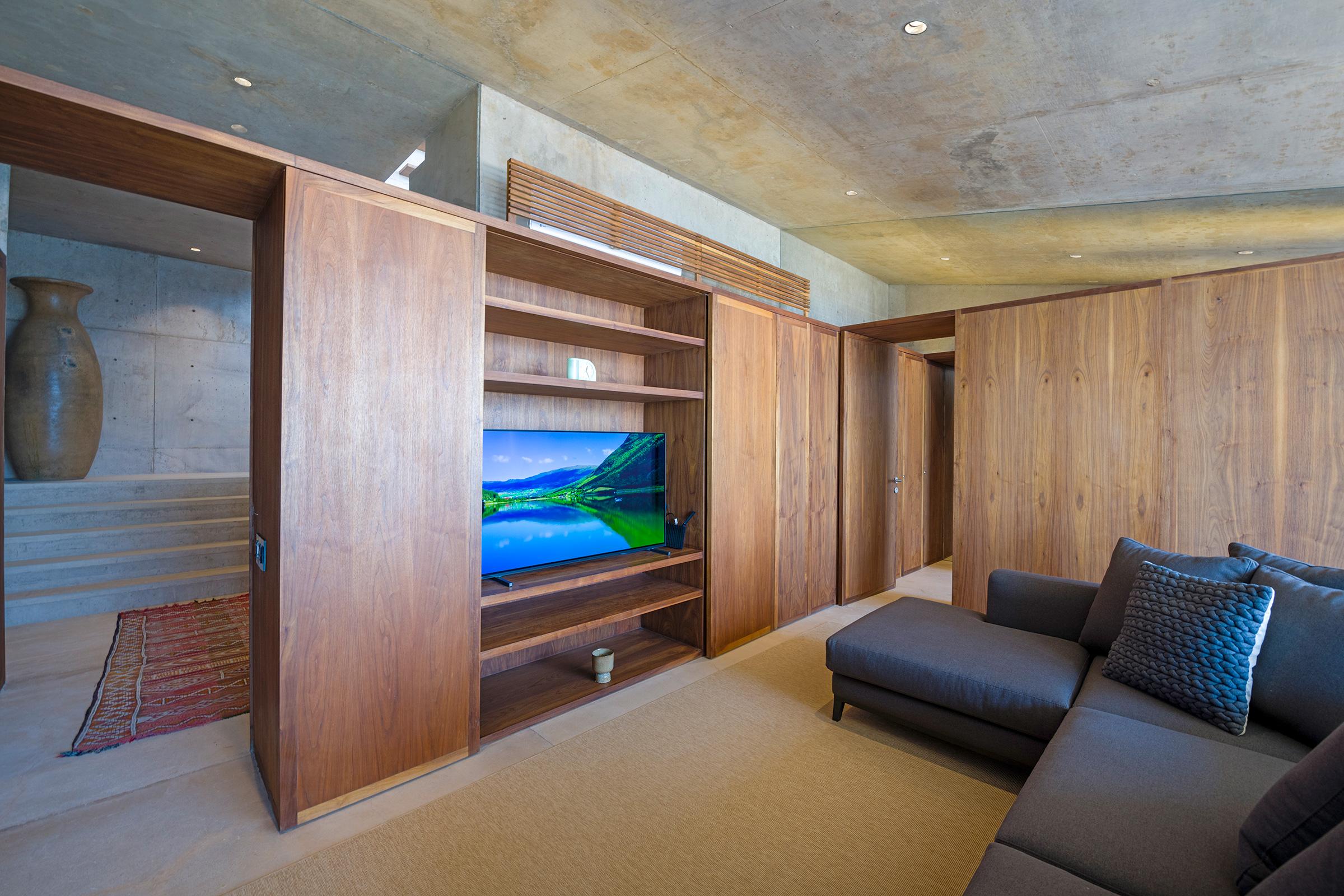 Primary Bedroom: This room has a king-sized bed, a TV, a mini-fridge, and an ocean view. The Primary Bedroom also has an ensuite bathroom with an ocean-view shower.