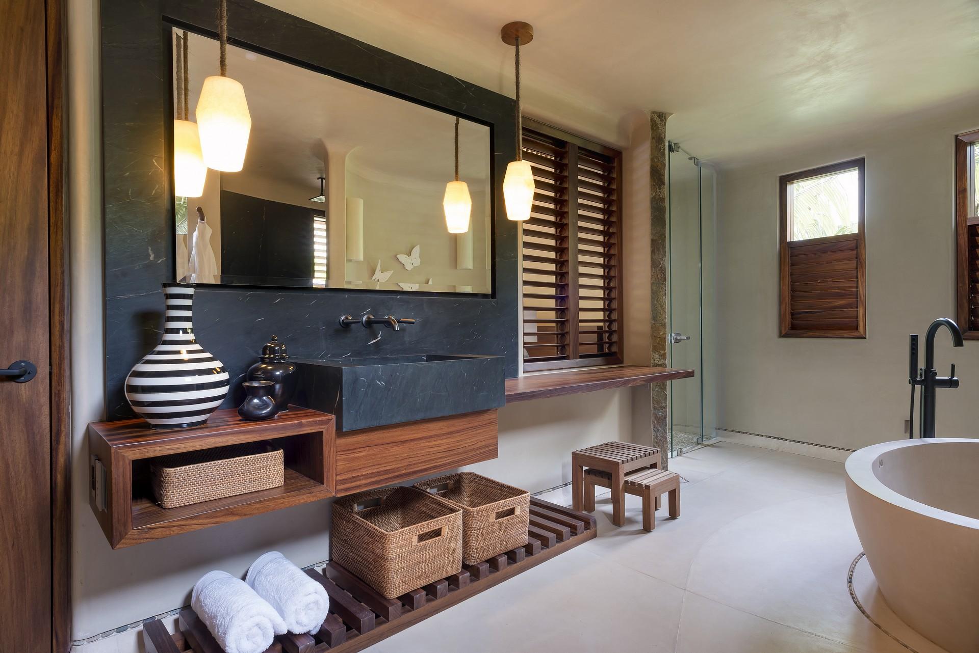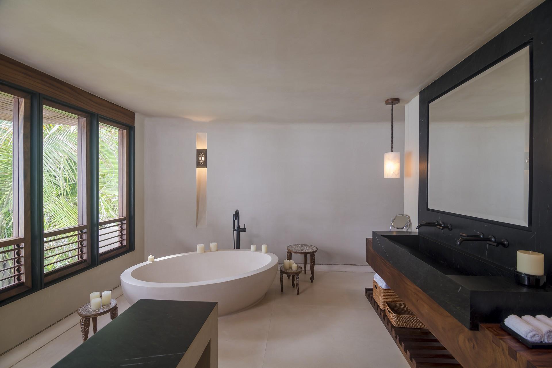 - Bedroom 2: King bed, en suite bathroom with free standing bathtub and rain shower, over-sized vanity, private balcony, ocean views, TV, telephone, bathrobes, hair dryer, safety deposit box, ceiling fan, AC, wifi