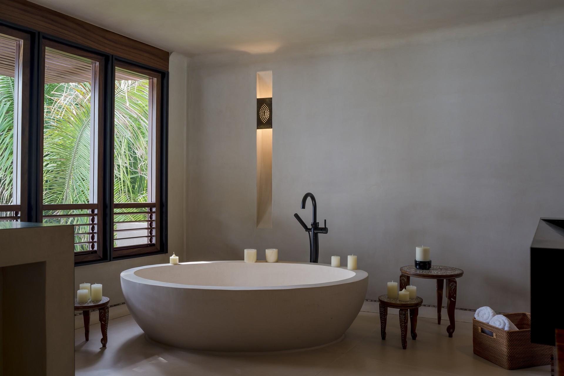 - Bedroom 7: Two twin beds, en suite bathroom with bathtub and rain shower, al fresco bathtub, private balcony, TV, telephone, bathrobes, hair dryer, safety deposit box, ceiling fan, AC, wifi